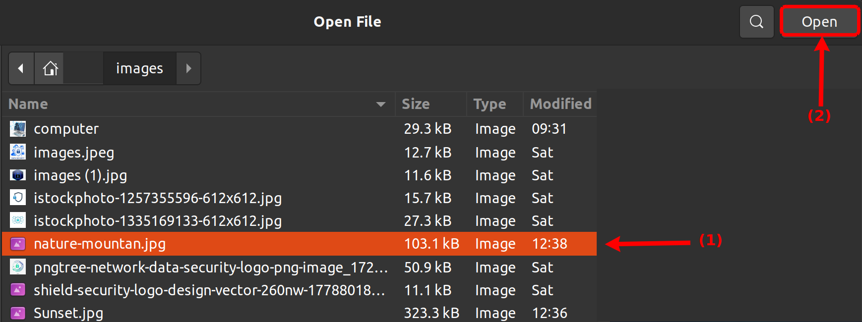 Browse personal files on computer and select the file or files you wish to attach [1]. Double click the selected files or click the Open or Choose button [2] to upload the files to the discussion reply.