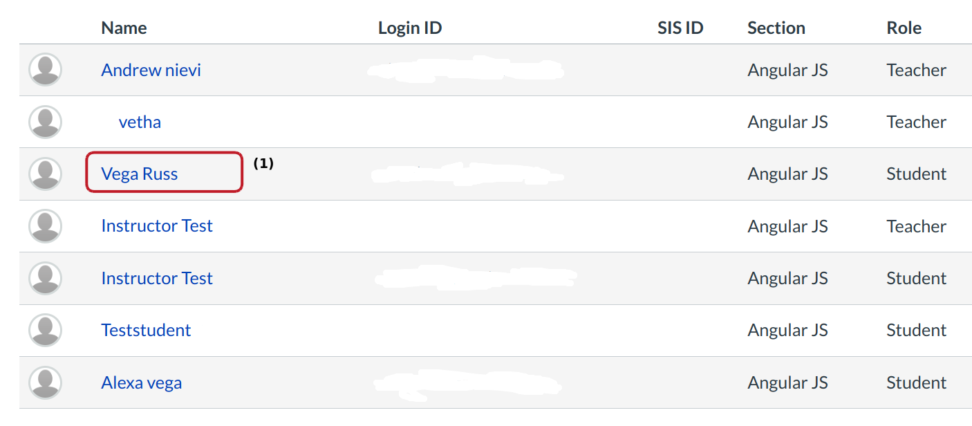Choose the student you want the Outcome report for by clicking on the name [1].