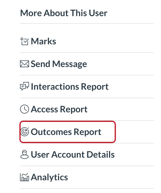 Click the Outcomes for [student name] link.
