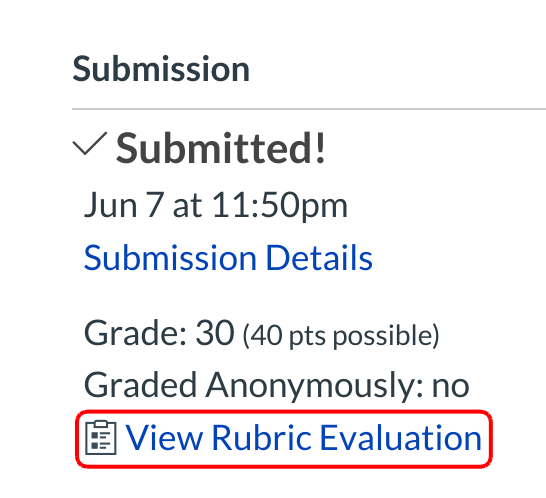 Click the View rubric evaluation link in the side bar.